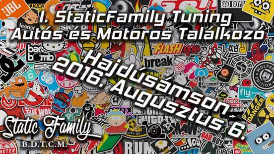 Az áv második fergeteges bulia az I. Static Family Tuning Autós és Motoros találkozó amely Hajdúsámsonban kerül megrendezésre AUGUSZTUS 6-án. A brutálisan kegyetlen jó hangulat garantált a szervező team nem teljesen 100-as de jó értelemben, szóval minden adott egy hatalmas autós motoros partyhoz. Számos program egyedi építésű autók és motorok, hangnyomásmérés és megannyi szórakozás vár minden helyszínre kilátogató kiállítót és nézőt egyaránt! Aki kihagyja nem tudja mit veszít... !